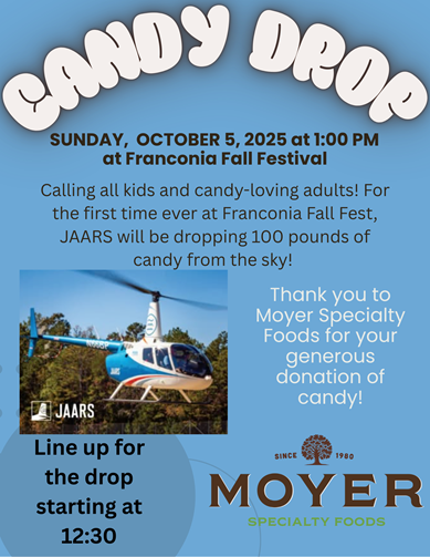 Calling all kids and candy loving adults! Come to the first ever Candy Drop at the Franconia Fall Fest!