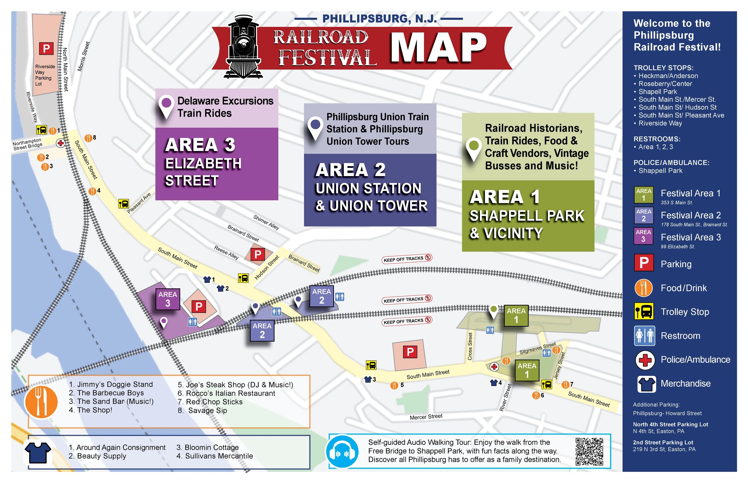 The Phillipsburg Railroad Festival offers visitors a unique opportunity to explore the town’s rich railroading history across three walkable areas, beginning at 11 a.m. in Area 1 at Shappell Park and the surrounding streets. This area features food and retail vendors, live music, and the Centerville and Southwestern Railroad—a miniature train ride operated by the Phillipsburg Railroad Historians. Guests can also view a collection of vintage buses on display, provided by the Friends of the NJ Transportation Heritage Center.