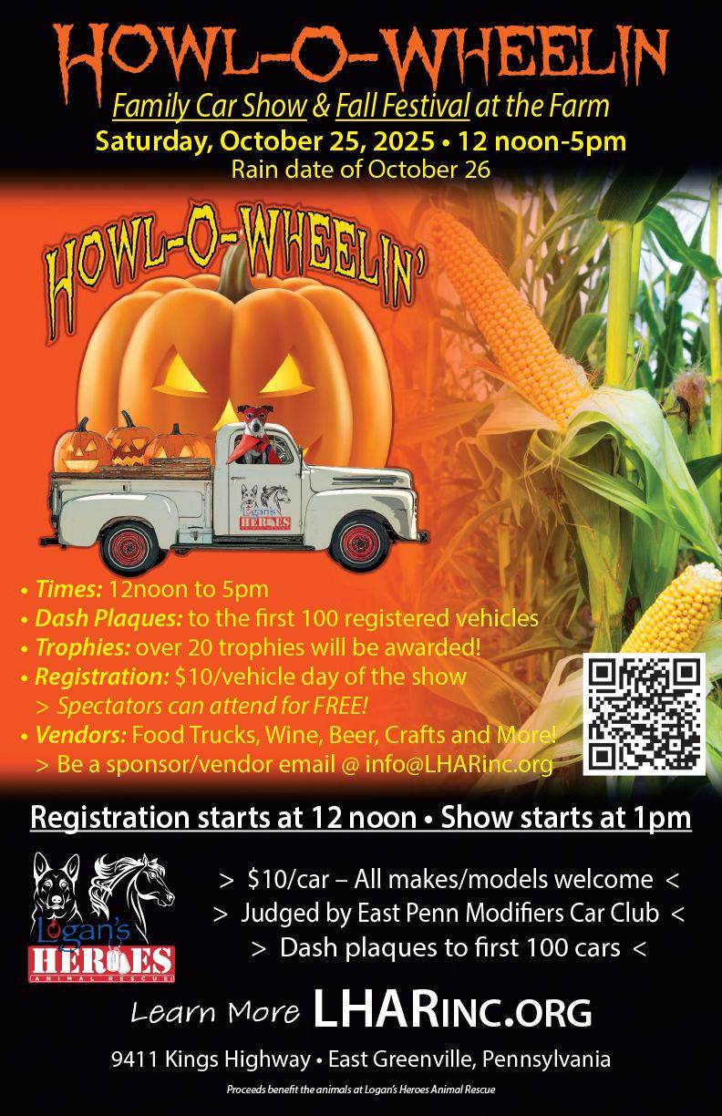 Join the fun at the Howl-O-Wheelin' Car Show and Fall Festival at Logan’s Heroes Animal Rescue Inc on Saturday, October 25, 2025, starting at 12 Noon (rain date: October 26). Car, truck, and motorcycle enthusiasts are invited to show off their vehicles while supporting the […]