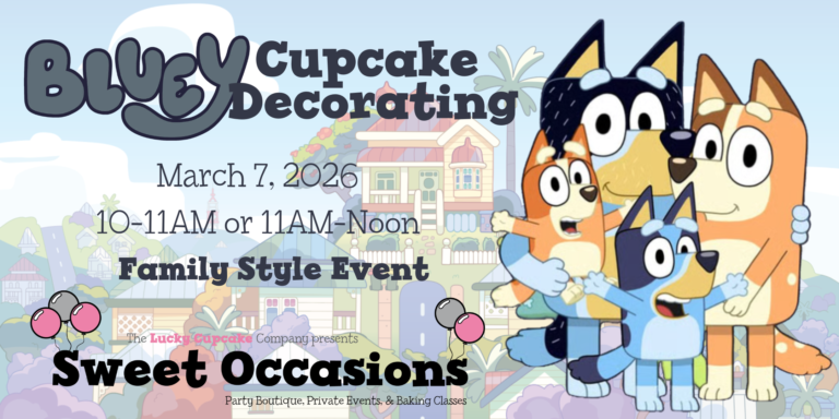 Come join Sweet Occasions for their Bluey Cupcake Decorating workshop! Tickets are $31.72 for a session at 10am-11am or 11am to 12pm. Tickets are for 1 adult and 1 child.