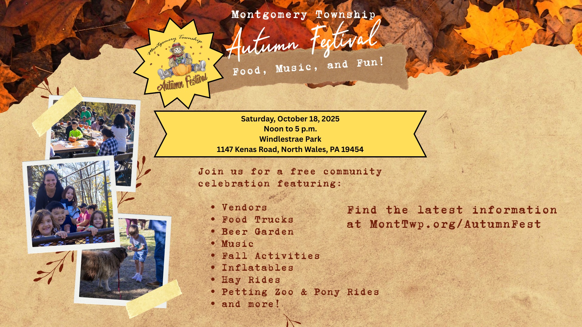 Montgomery Township is hosting its annual Autumn Festival community event on Saturday, October 18, 2025, from 12 p.m. to 5 p.m. at William F. Maule Park at Windlestrae. This year’s events will include many of the park attractions that residents of Montgomery Township have grown […]
