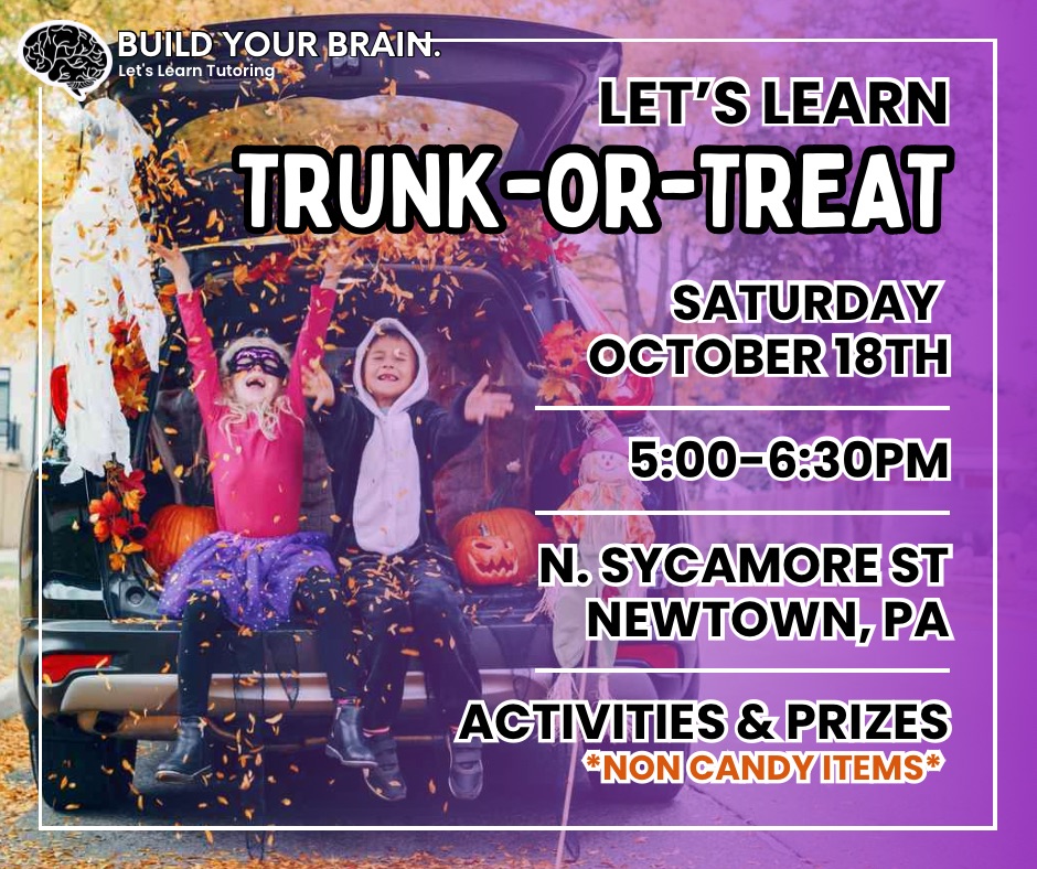 Join Let's Learning Tutoring for their 2nd annual  Trunk-or-Treat on Saturday, October 18th from 5- 6:30 pm!  Show off your costumes! Meet at 223 N Sycamore Street, Newtown PA! Each trunk will feature an ACTIVITY where kids can win exciting non-candy prizes (allergen friendly event). […]