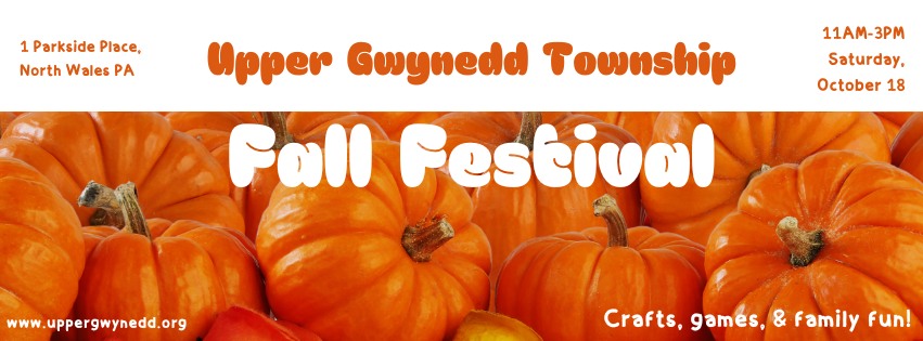 Join Upper Gwynedd Township Parks & Rec for our annual community Fall Festival. This fun afternoon will be filled with vendors, children’s crafts, hayrides, games, entertainment & much more! Event starts at 11 am Information on their website: www.uppergwynedd.org
