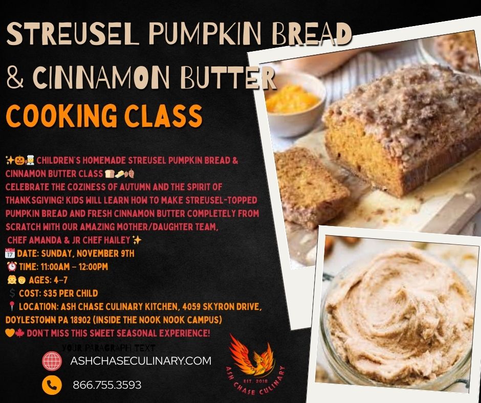 • Homemade Streusel Pumpkin Bread Class at Ash Chase Culinary