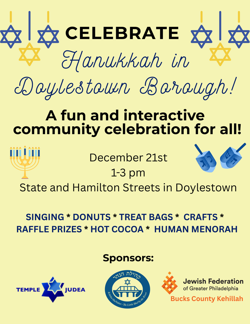 🕯️ Come celebrate the Festival of Lights with Temple Judea in Doylestown Borough! State and Hamilton St. will be decorated to kick off the season. What to expect: A Human Menorah for a unique twist on tradition Hot chocolate and Donuts Hanukkah Singalong with festive tunes […]