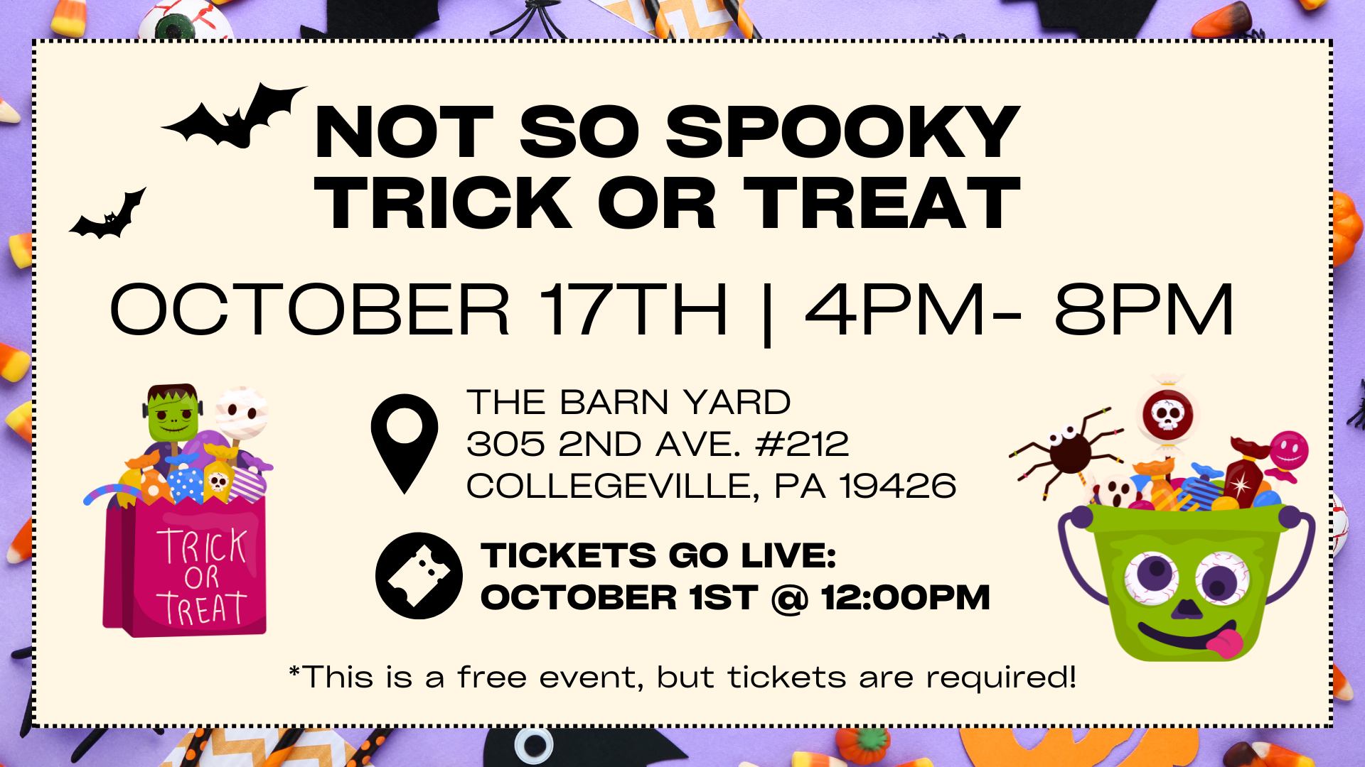 Come Trick or Treat with local vendors, the Barn Yard staff and members of the community! This event is free but Tickets (for kids only) are required