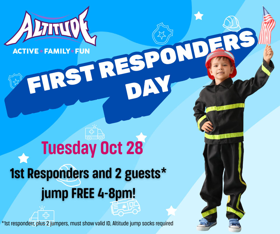Altitude is proud to celebrate National First Responders Day by hosting a free jump afternoon for all local first responders on Tuesday October 28. From 4 to 8pm, firefighters, police officers, paramedics, EMTs and other emergency personnel plus 2 guests, are invited to enjoy complimentary […]