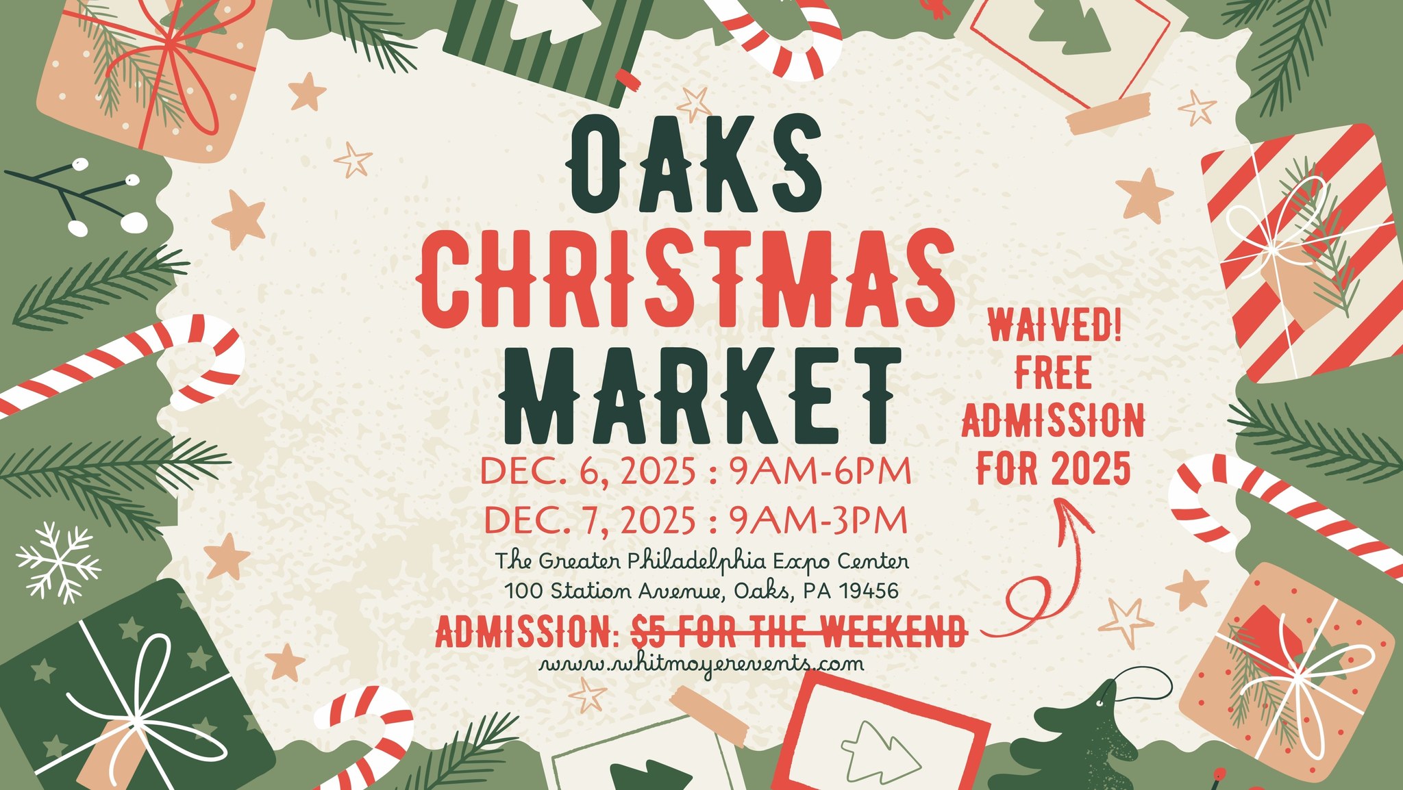 Greater Philadelphia Expo Center The Fairgrounds at the Greater Philadelphia Expo Center, 100 Station Avenue, Oaks, PA, United StatesThe 2nd Annual Oaks Christmas Market // A Holiday Gift Show will take place on Saturday, December 6, 2025, from 9 a.m. to 6 p.m., and Sunday, December 7, 2025, from 9 a.m. to 3 p.m. at the Greater Philadelphia Expo Center. This year’s market […]