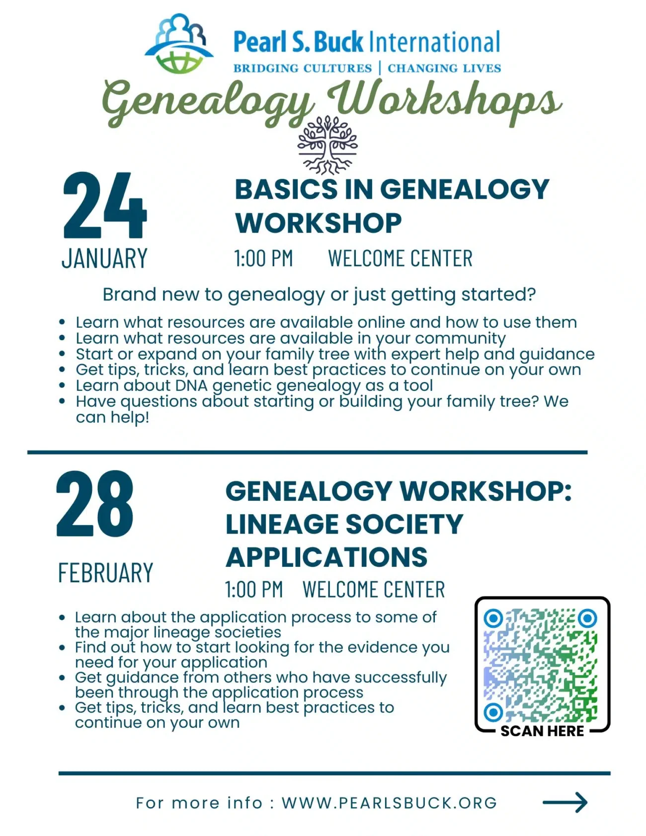 As America marks its 250th birthday, Pearl S. Buck International invites the community to take part in two winter genealogy classes set amid the rich history of Bucks County and the Pearl S. Buck House.