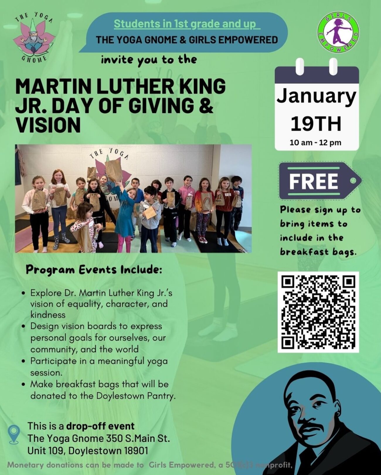 In honor of the legacy of MLK Jr., children and families will explore hands-on activities that empower them to use their voices, creativity, and curiosity to make a difference.