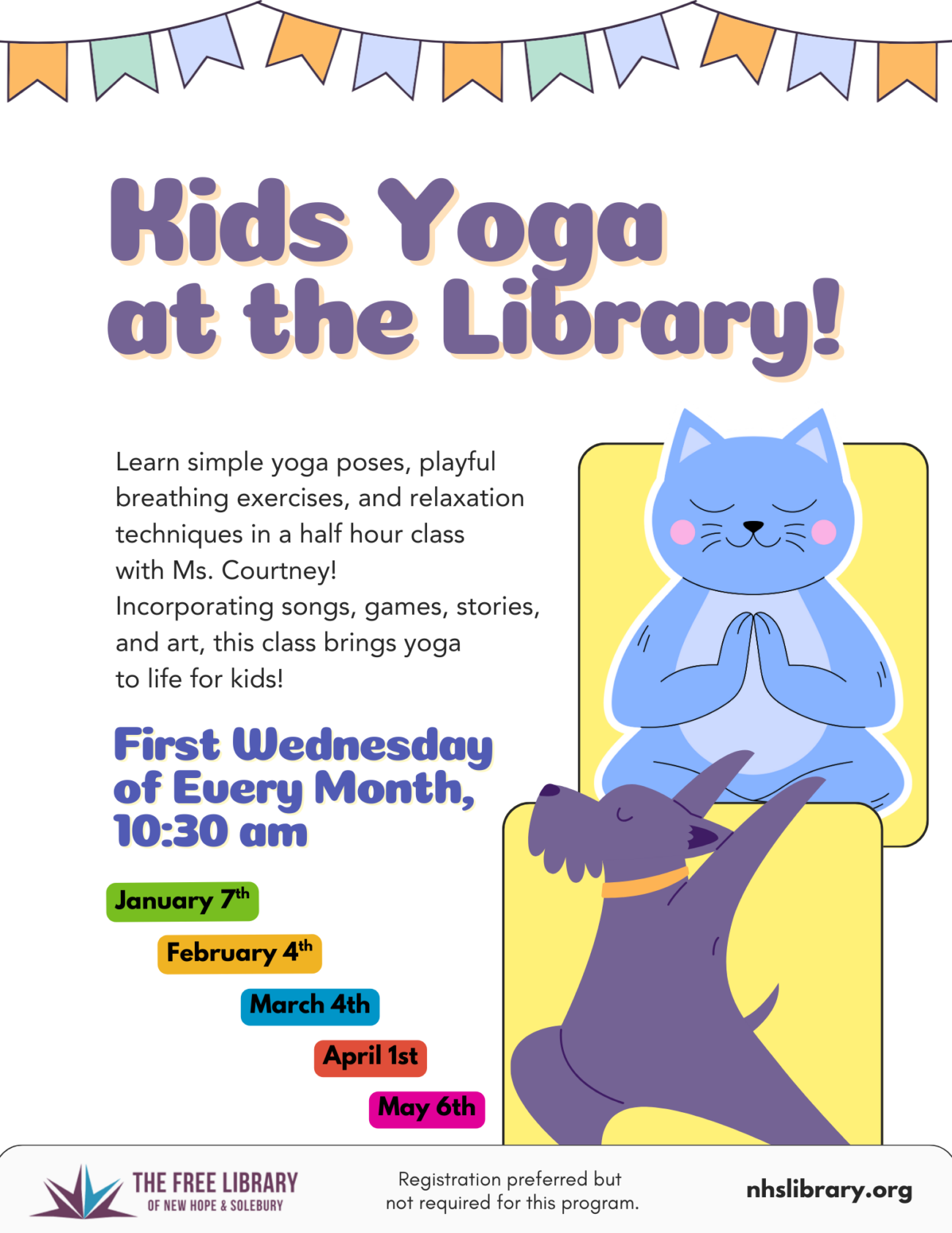 Join The Free Library of New Hope & Solebury for Kids Yoga at the Library on select Wednesday Mornings at 10:30 a.m.
