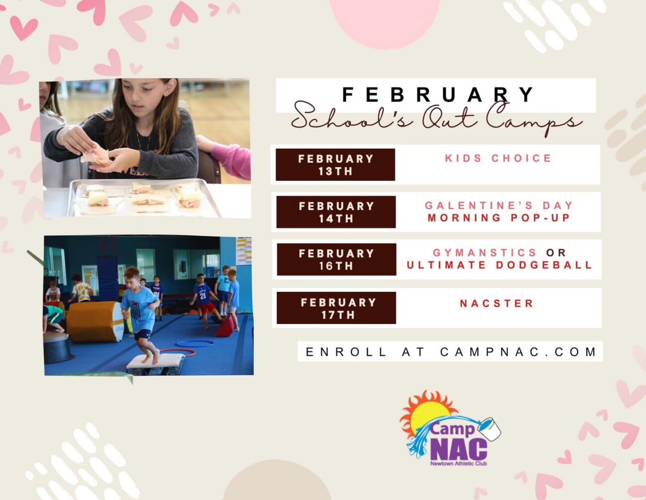 Camp NAC offers reliable childcare on school closure days, including holidays, in-service days, and breaks, aligned with Council Rock, Neshaminy, Pennsbury, and St. Andrew's calendars. Campers ages 5-12 enjoy daily indoor pool time (swimsuits required), while ages 3-4 participate in a separate Early Learners program